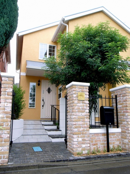 黄色い外壁が印象的な建物と調和した、ナチュラルガーデン。