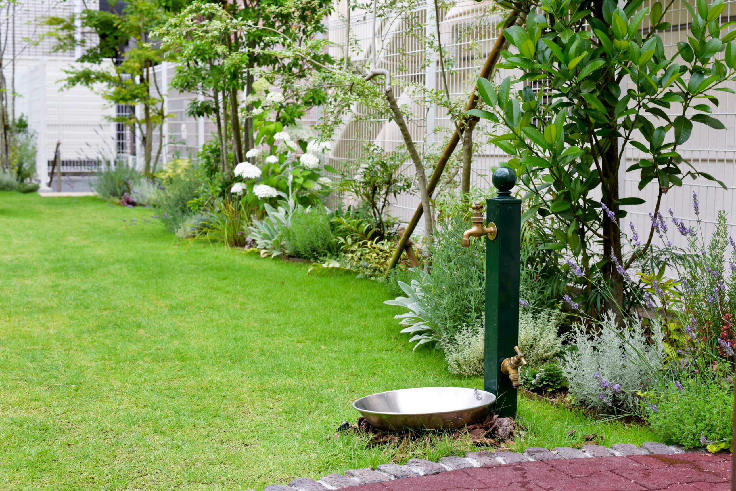 「門塀」を道路際まで移設することで来客者・郵便屋さんの動線をリビング手前で