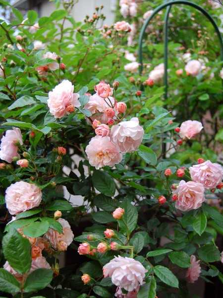 さらに進むとテラスがあり、その上のパーゴラのツルバラ 「フランシス・E・レスター 」もかなり繁って