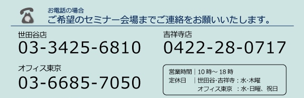 世田谷店、吉祥寺店、オフィス東京にて開催いたします